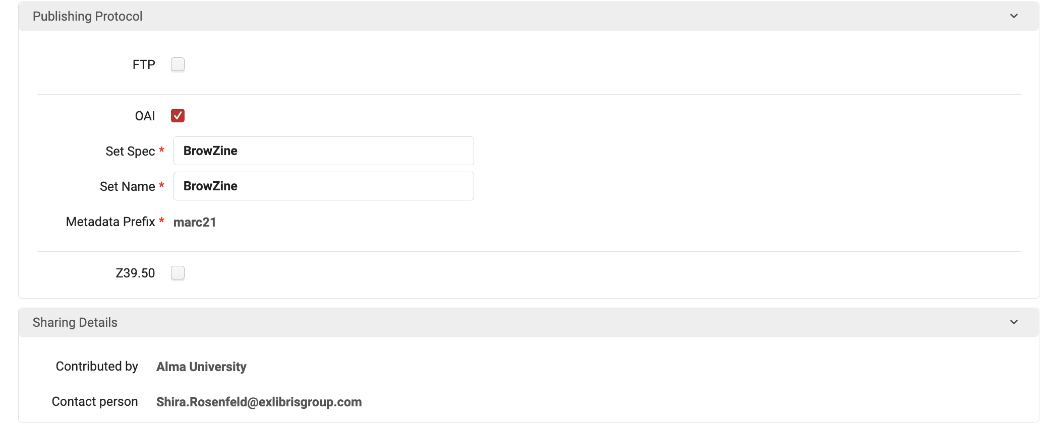 - Alert us at support@thirdiron.com once the above is complete to let us know you've migrated to the new OAI publishing profile, providing your institution name and (if known) your Third Iron library ID. If you changed the SetSpec name, please specify the new one in your message. We will then run some tests and make sure all is well.