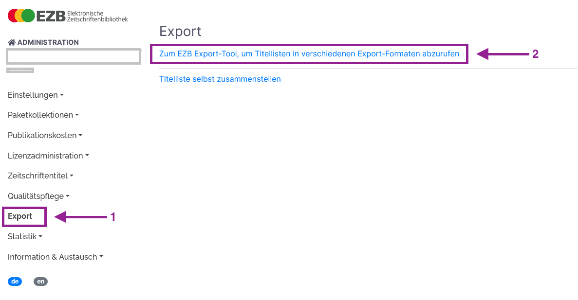 “Zum EZB Export-Tool, um Titellisten in verschiedenen Export-Formaten abzurufen”